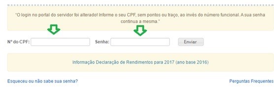 O primeiro passo para obter a declaração é clicar no link Informe de Rendimentos, localizado na parte superior do site, conforme imagem abaixo (I). Em seguida, é necessário que o segurado digite o número de seu CPF e senha nos campos em branco (II).