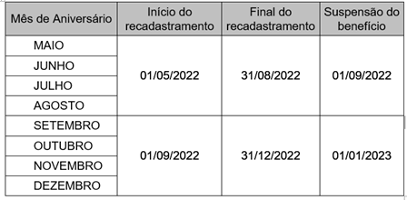 Os beneficiários que fizeram aniversário nos meses de janeiro e fevereiro de 2022 não tiveram que se recadastrar este ano, 2022, pois a ação começou em março/2022. Porém, atenção, em 2023 eles precisarão fazer o recadastramento.